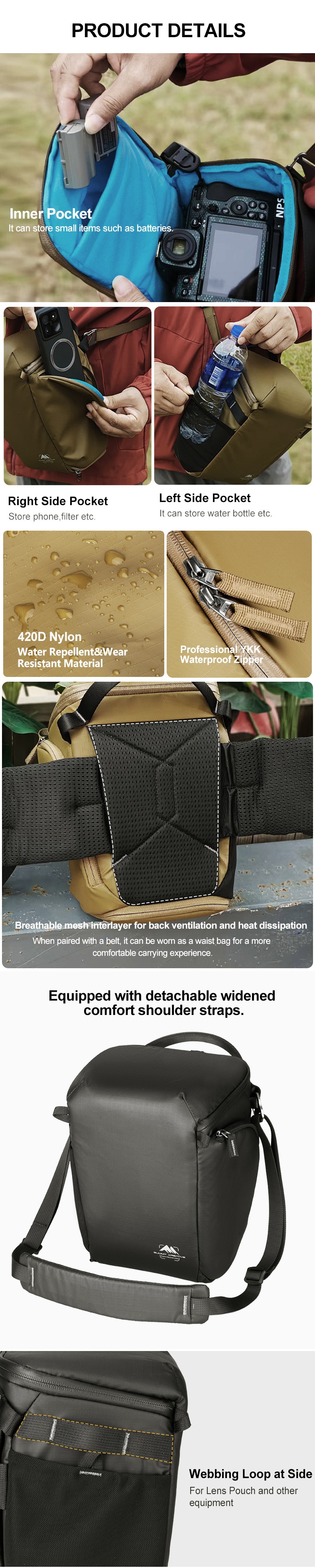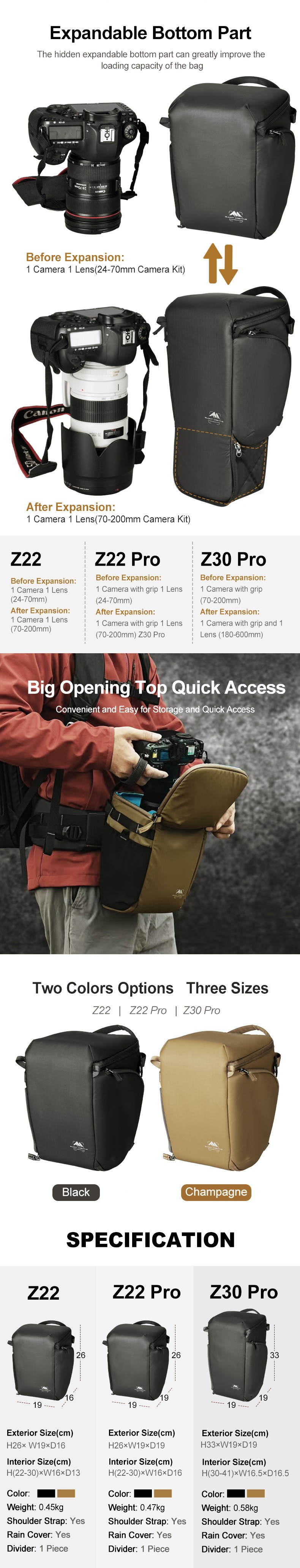 ・包的底部采用隐藏式可拓展设计,大大提高了包的装载容量轻松应对不同器材需求